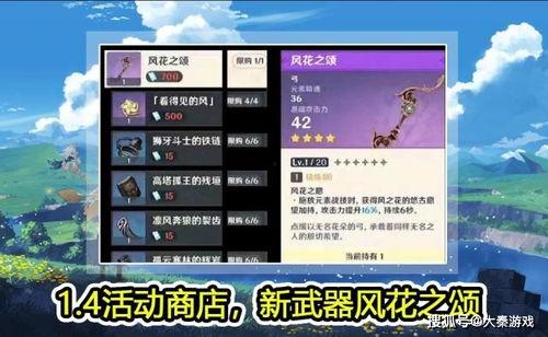 除了新角色,1.4版本還將帶來全新的武器。其中,最引人注目的莫過于莫娜的專屬武器——莫娜之眼。這款武器擁有著獨特的元素反應,能夠與莫娜的元素爆發產生共鳴,大幅提升她的戰斗力。此外,還有一款名為“斷流”的五星單手劍,它擁有著極高的攻擊力,適合喜歡近戰玩家的使用。